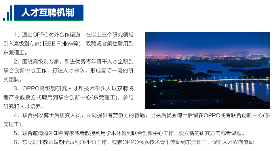 与 OPPO、华为、松山湖材料实验室等深度合作,建设国际一流研究平台,聚焦学科前沿,强化交叉融合,助力东莞“科技创新+先进制造”战略目标。