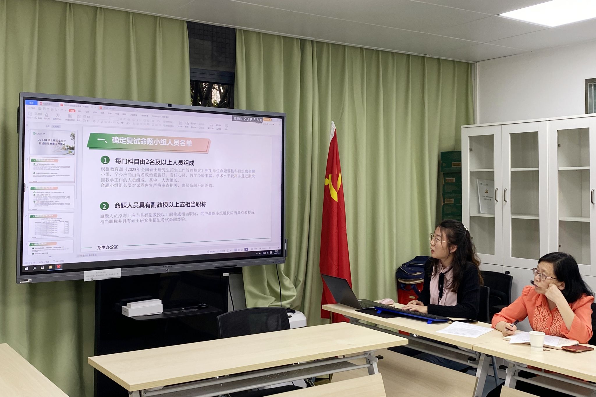 公司研究生招生负责老师逯瑶传达了公司2023年研究生招生录取工作布置会的相关文件精神和进度安排。