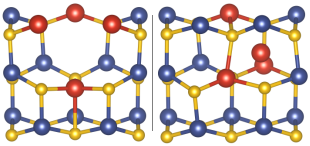 针对GaN中p型掺杂的难点研究了GaN掺杂Mg体系的受主补偿效应,提出两类复合缺陷的形成有利于克服补偿作用,如图所示,有助于体系实现p型导电性,并且可以解释不同生长方法生成样品的不同导电和发光特性。论文发表在APL Materials,并且被编辑选为“Featured Article”。