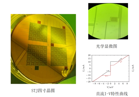 软X射线能谱以其元素特异性、高能量分辨和表面敏感特性,在材料科学、化学、生命科学、能源与环境等诸多领域,提供了不可或缺的分析手段。超导隧道结(STJ)探测器在软X射线能谱中具有优势,其能量分辨率显著优于传统半导体探测器,且在保持高分辨的同时具备高计数率。本团队设计的STJ像素采用Nb-Al-AlOX-Al-Nb的超导-绝缘-超导结构。当X射线光子被一侧Nb吸收后,会打破Nb超导态中的库珀对,产生成千上万的准粒子激发。这些非平衡准粒子在超导体中弥散,一部分穿越隧道势垒(AlOX)隧穿到对侧Nb中,形成短暂的电流或电荷脉冲(图9)。脉冲幅度(转化为电压信号)正比于入射光子的能量,通过测量每个脉冲的电荷量即可得到光子的能量信息。目前使用自开发工艺已成功研制了单像素STJ,测得了典型的约瑟夫森直流特性(图10)。下一步将通过改进设计并优化工艺提升其性能。