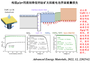 (10) Jiankai Zhang, Yapeng Sun, et al., Reduced open‐circuit voltage loss of perovskite solar cells via forming p/p+ homojunction and interface electric field on the surfaces of perovskite film, Advanced Energy Materials, 2022, 12(47): 2202542.