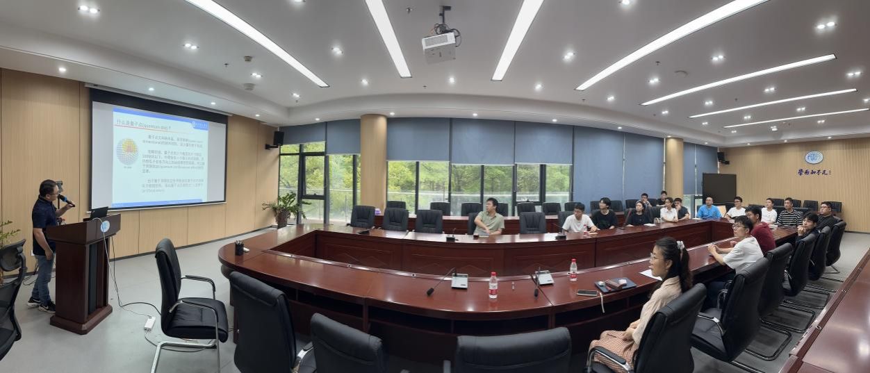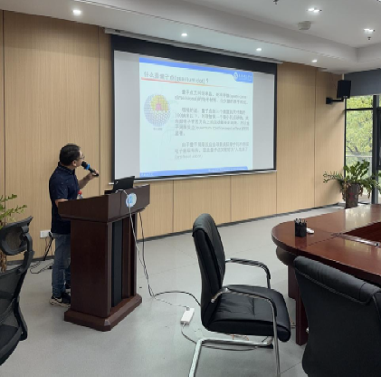 2024年4月18日下午在大学创新城G2栋2楼203会议室,周海教授为公司老师、研究生,分享了最新的研究成果——钙钛矿量子的室温合成及应用。
