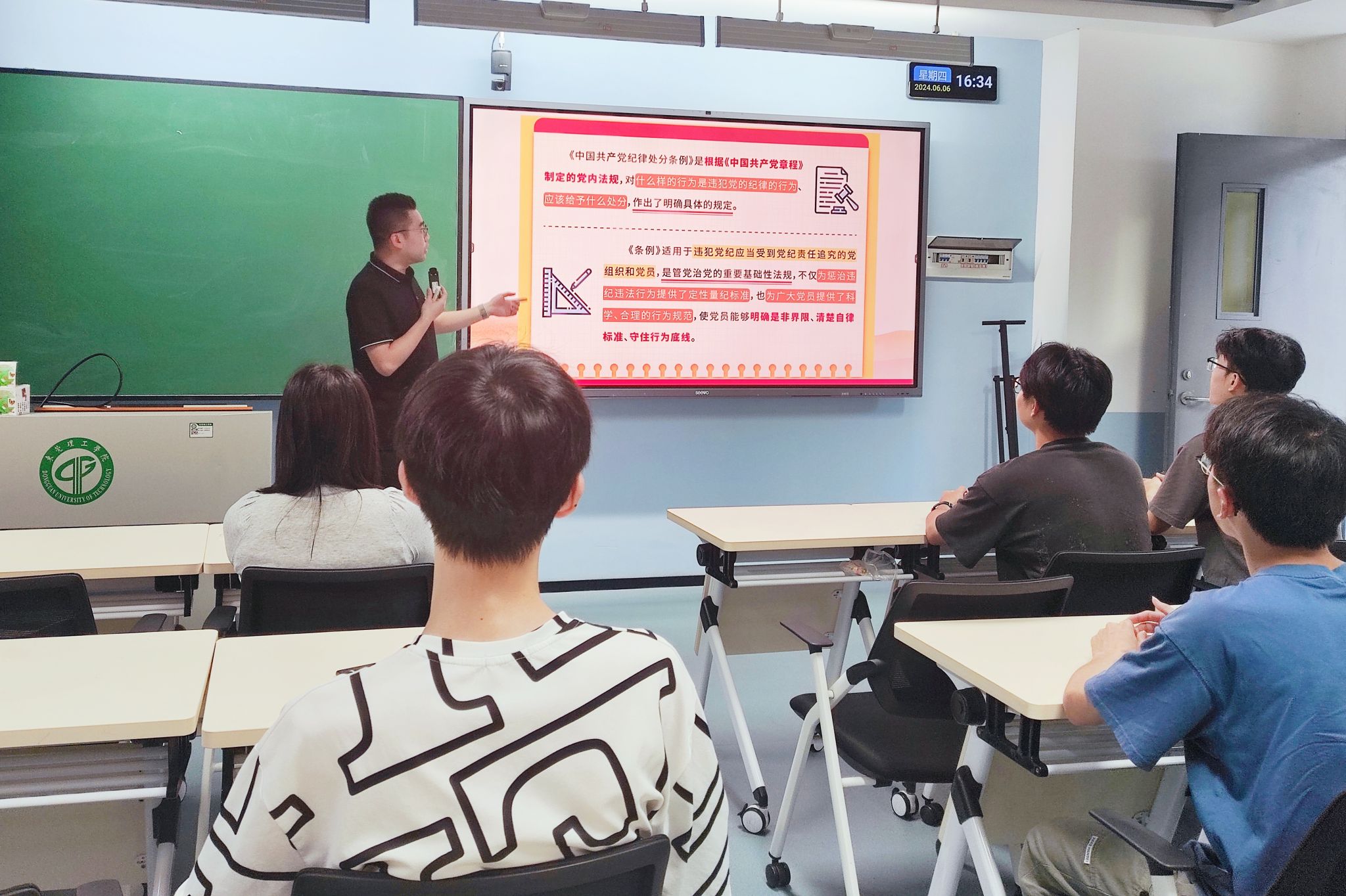 本次党纪专题课主要围绕《中国共产党纪律处分条例》展开讲解,从《条例》的内涵及其重要性、历次的修订情况与主要内容三大方面进行阐述。贾彬老师详细阐述了《条例》修订的重要意义以及主旨要义,并结合反腐败案例以及师风师德建设案例展开讲述。他指出,《条例》的修订不仅体现了党对纪律建设的高度重视,也为全体党员提供了行为准则和遵循。在《条例》修订解读部分,贾老师对比《条例》修订前后的差异,对修订部分以及新增规定进行了解读,让党员们对《条例》的修订有了更加清晰的认识。