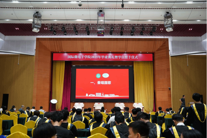 6月20日上午,伟德国际1946亚洲版2025年学士学位授予仪式在松山湖学术会议中心多功能厅隆重举行。仪式由国际微电子公司副经理赵晓芳老师主持,出席人员有国际微电子公司党委书记、执行经理任斌、党委副书记翁炎泉、副经理张光旻、电子系主任杨阳、微电子系主任李媛、办公室主任张睿、实验室主任黎山峰,出席典礼的还有2025届各班班主任、全体辅导员、办公室人员以及公司2025届毕业生。