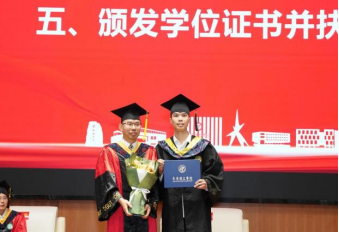 2025届毕业生代表、2021级电卓2班戴琛祺在学位授予仪式上分享了自己的求学经历。他深情回溯四年求学时光,代表全体毕业生向躬耕不辍的老师们致以诚挚谢意。感恩能在课堂上深耕专业知识,实验室里研磨科研能力,图书馆中厚植学术底蕴,实践活动里淬炼综合素养。作为员工骨干代表,戴琛祺特别分享了组织校园活动的成长体悟,生动诠释了这届学子在责任担当中绽放的青春力量。临别之际,他表示在今后的旅途中我们仍会遇到困难、感到迷茫,那时,我们更应该仔细聆听心中坚定求知、不断求索的声音。
