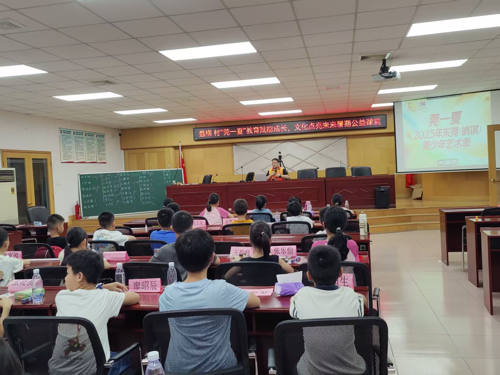 在回顾视频中,一幕幕珍贵画面引人动容:突击队成员与孩子们的初次相见,相互做自我介绍的青涩;艺术组的成员教孩子们单点透视知识,共唱歌曲《友谊地久天长》;生命健康组系统地开展校园霸凌认知课、安全应急救护知识课防溺水安全教育课;有书法组一笔一划带领孩子感受汉字魅力、沉浸传统文化的专注时刻;也有手工组的成员指导同学们完成科普实验模型的拼装、漆扇与扭扭棒的制作以及摄制组默默记录美好的时刻与孩子们的成长。最后荔横村团支部书记张立行总结发言。这段时光,不仅是知识的积累,更是友谊的收藏 —— 有师生间的温暖互动,也有小伙伴们的并肩成长,这份充实又珍贵的收获,成为这个夏天难以忘怀的记忆。