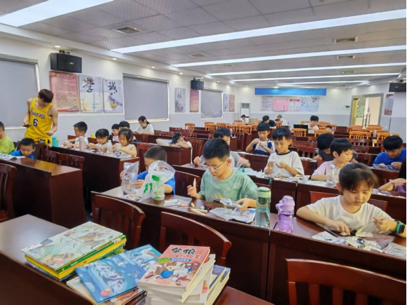 除了声控小汽车,彩色漆扇制作同样见证了孩子们的创造力。素面漆扇、环保颜料在孩子们手中变成独一无二的艺术品:有的绘制卡通形象,有的用渐变色晕染出 “夏日清凉”,还有的在扇面写下 “平安”“快乐” 等稚嫩祝福。突击队成员在旁耐心指导色彩搭配,鼓励孩子们“不用画得完美,要画出自己的想法”。当孩子们举着亲手制作的漆扇相互展示时,笑容里满是“完成作品”的自豪。从“按步骤组装”到“自由创作”,手工实践不仅锻炼了孩子们的动手能力,更让他们体会到“创意无边界”的快乐。