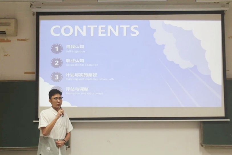 主持人崔瑞娇宣读了比赛的流程和评分标准,9名参赛选手结合PPT展示和现场讲解,从自我评估和定位、环境分析、职业目标定位与确立、实施策略、评估调整等方面,展示自己对未来职业生涯的规划,畅想个人职业蓝图。评委老师们对选手表现给予了充分的肯定,提出了中肯的建议,进行了耐心的指导,希望同学们深入探索职业内容,丰富自身实习经历,制定出更适合自己的职业规划之路。