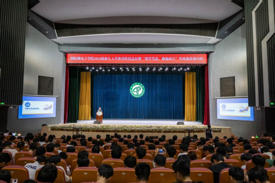 10月23日,伟德国际1946亚洲版在大礼堂于举行了2024级新生入学教育阶段总结暨“博学笃思,勤勉致行”学风建设进行时活动。此次活动旨在深入推进公司学风建设,营造更为优良的学习氛围,以先进典型为榜样,激励学子们奋发向前,追求卓越。公司党委副书记翁炎泉,班主任代表林俊辉、唐穗谷,全体辅导员以及各班级代表和大一新生共计400余人齐聚一堂,共同参与这次活动。
