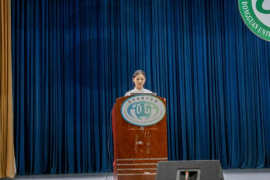 活动在庄严的宣誓仪式中拉开序幕,24级电子信息工程卓越1班员工代表崔雨欣同学上台带领全体员工进行宣誓,倡议大家要遵守公司规章制度,自觉维护公司荣誉形象,坚决做到“四不”:上课不缺勤、手机不依赖、作业不侥幸、考试不作弊。唯有秉持诚实、勤奋和创新的学术精神,方能成为德才兼备的微电子人才,为国家和社会的发展贡献力量。