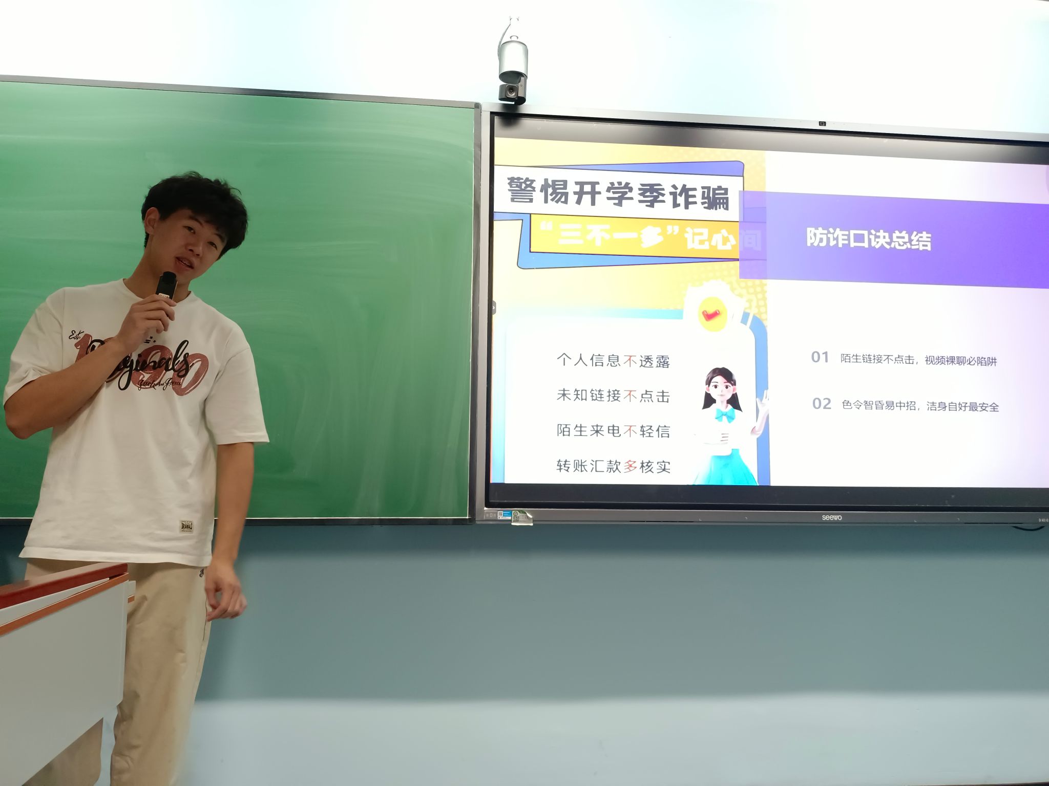 班会伊始,班长聚焦反诈宣传,通过列举网络刷单、游戏账号诈骗等真实案例,深刻剖析了骗子的常用手段,为同学们敲响了警钟。随后,班主任鼓励大家结合专业特色,制定个人发展规划,积极参与科研和实践活动,为未来的职业生涯打下坚实的基础。