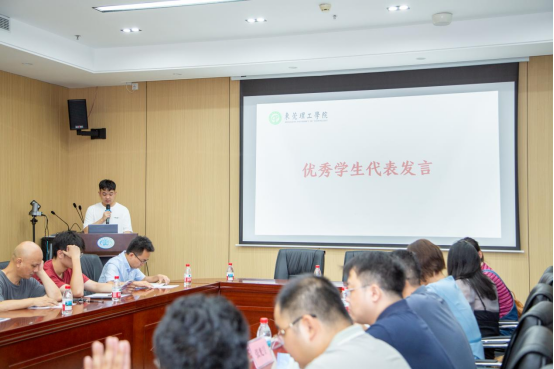 优秀员工代表发言中,戴琛祺同学分享了自己在多元平台历练下的全面成长。通过积极参与员工组织工作、策划组织各类活动以及投身社会实践与志愿服务,他不仅有效提升了沟通协作与组织协调能力,更锤炼了卓越的领导力和高度的社会责任感。卓志坤同学则重点讲述了自己在学术探索与竞赛征途中的突破历程。从初入大学时面对专业基础的差距倍感压力,到锚定目标、潜心钻研,在老师指导和团队协作下,他不仅取得了优异的学业成绩,更在蓝桥杯等学科竞赛中屡获佳绩,实现了从追赶者到领跑者的自我超越。