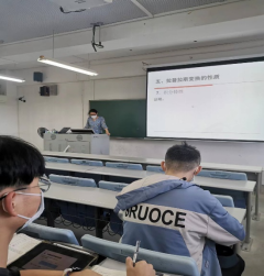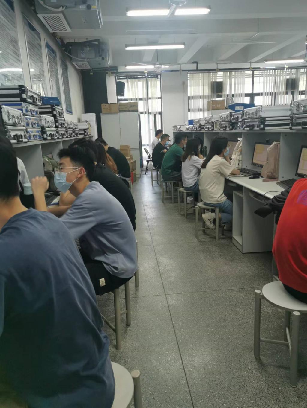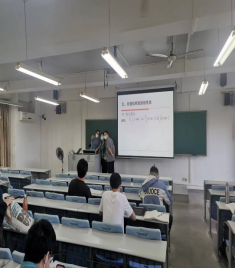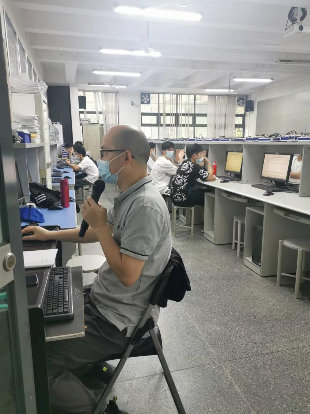 2022年5月17号早上,本学期线下上课第一天,伟德国际1946亚洲版卢贵主副经理带领微电子系与电子系主任对开学第一次线下教学进行了考察,授课教师很早到位,一切上课工作都准备就绪。老师和同学们都佩戴口罩,做好了防疫措施。线下线上混合教学秩序良好,尽管6c405电脑显示屏黑屏,授课老师结合板书依然正常授课。