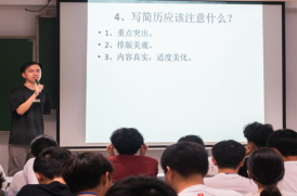 2020级吕炳飞师兄从简历制作、面试技巧,以及工作选择等方面做了生动有趣的展示。他阐述简历制作要重点突出、简洁明晰,如宝剑出鞘,尽显锋芒;面试则需注意着装、礼貌等细节,通过模拟面试场景、提前准备常见问题,知己知彼,树立信心。此外,他鼓励同学们在求职过程中勇敢尝试、积极挑战,深入理解所应聘岗位的特性和要求,做足准备,并及时复盘学习,在一次次面试中积累经验。
